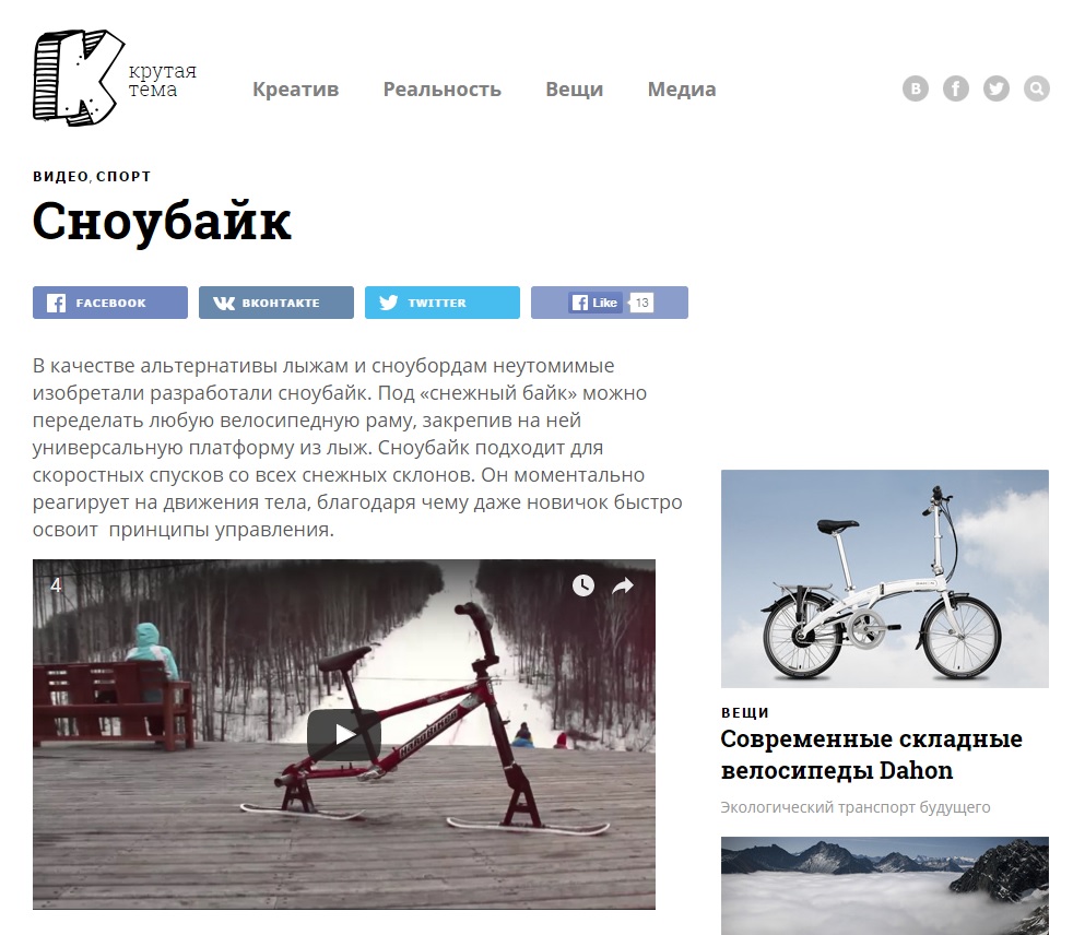 Информационный ресурс о всем необычном, написал про наш сноубайк и выложили самое первое видео.