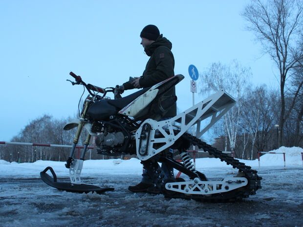 Конверсионный комплект для модернизации мотоцикла в легкий одноколлейный снегоход.