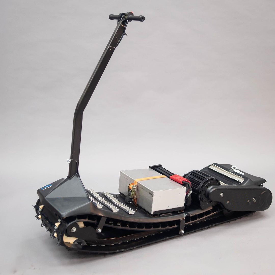 Подходит не только для развлечения и покатушек, но и для бизнеса по прокату или доставке и патрулированию. Прост в управлении. Есть курок газа как на самокате. Аккумулятор и электроника находится внутри пространства гусеницы. Руль складной.