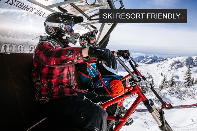 Благодаря конструкции седла этот Сноутрайк можно использовать как на бугельном подъемнике так и на кресельном. Вы просто садитесь на кресло вместе с байком, точнее на него.
