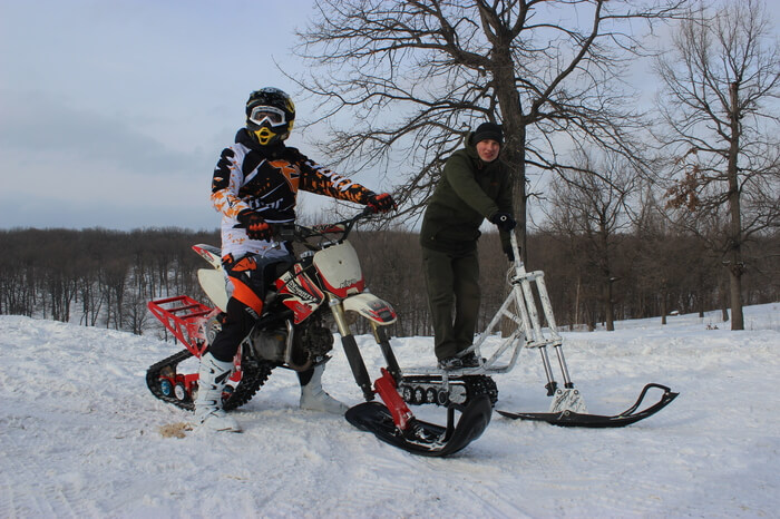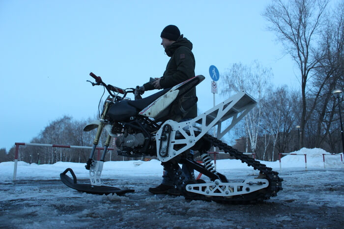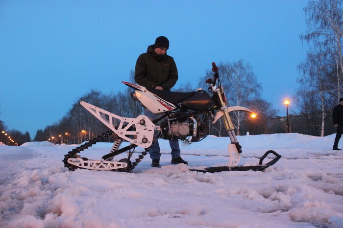 — Этот комплект будет пропорционально маловат для 250 кубового мотоцикла. Но может быть доработан с учетом более длинной гусеницы. Владельцев таких мотоциклов много, и наверняка этой зимой у нас уже будет что им предложить.