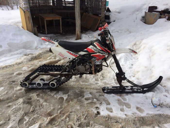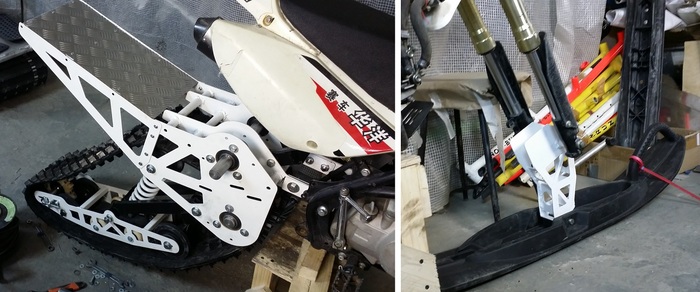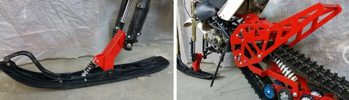 Конверсионный комплект для модернизации мотоцикла в легкий одноколлейный снегоход.