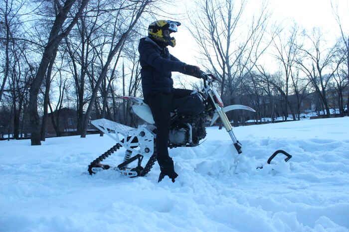 С гусеничным комплектом пользователь мотоцикла фактически получает удивительную возможность продолжить сезона на зиму, и дарит своему мотоциклу вторую жизнь. А производитель мотоциклов получает возможность «второй раз продавать» клиенту, увличивая прибыль. Конечно зимой нагрузки на байк сильно выше, но сейчас не об этом.