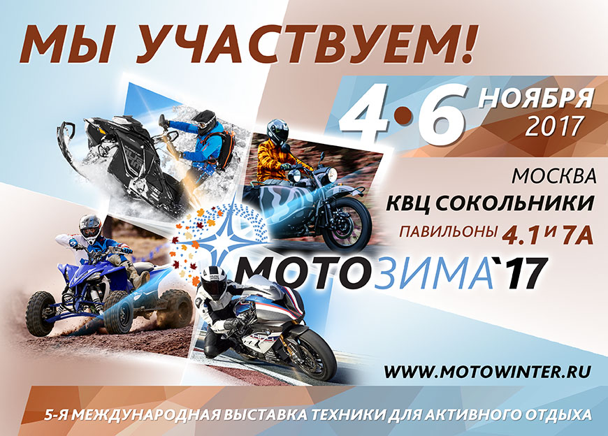 Зима на подходе, но мотоциклетный сезон не заканчивается! В первые выходные ноября в Сокольниках стартует самое крупное мотоциклетное мероприятие осени, выставка «Мотозима-2017». В очередной раз она собирает наиболее значимых игроков российского мотоциклетного рынка. Представительства и дилеры таких международных брендов, как BMW, KTM, Yamaha, Confederate покажут уже известные модели и новинки, которые только появились в России и еще не были доступны широкой публике. Помимо мотоциклов будут широко представлены снегоходы, квадроциклы, водномоторная техника, запчасти, экипировка, и расходные материалы. «Мотозима» собирает всех гигантов российского мотопрома: «Русскую механику», «Веломоторс», «Балтмоторс», «Ирбитский мотозавод». Помимо «Стелсов», «Уралов», «Буранов», «Калашниковых» и других брендов первого ряда, на «Мотозиме» можно увидеть отечественные разработки в области экипировки, тюнинга, спецтехники.
