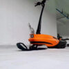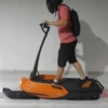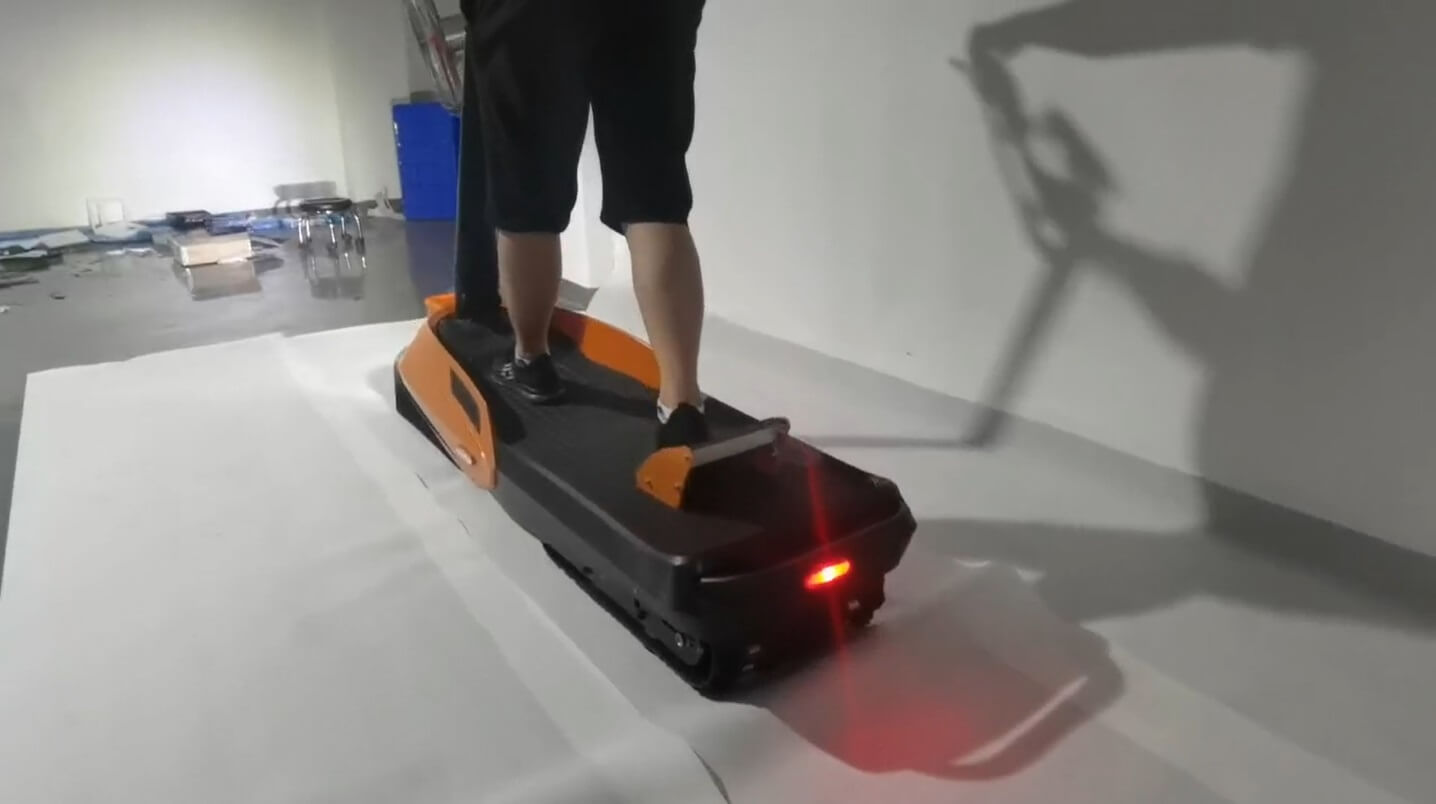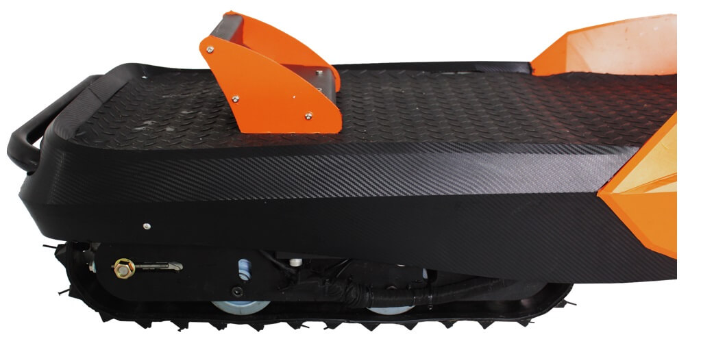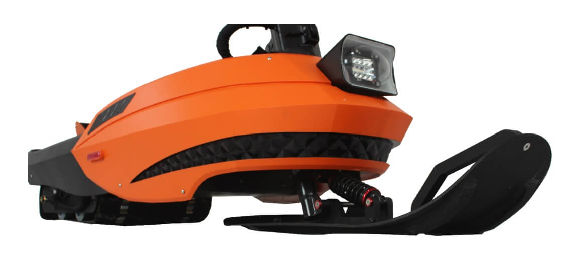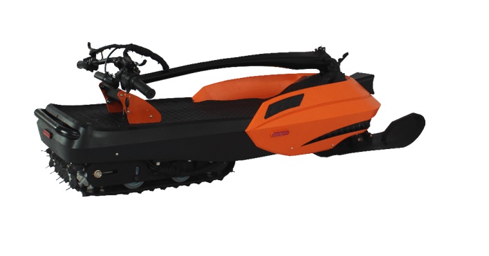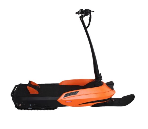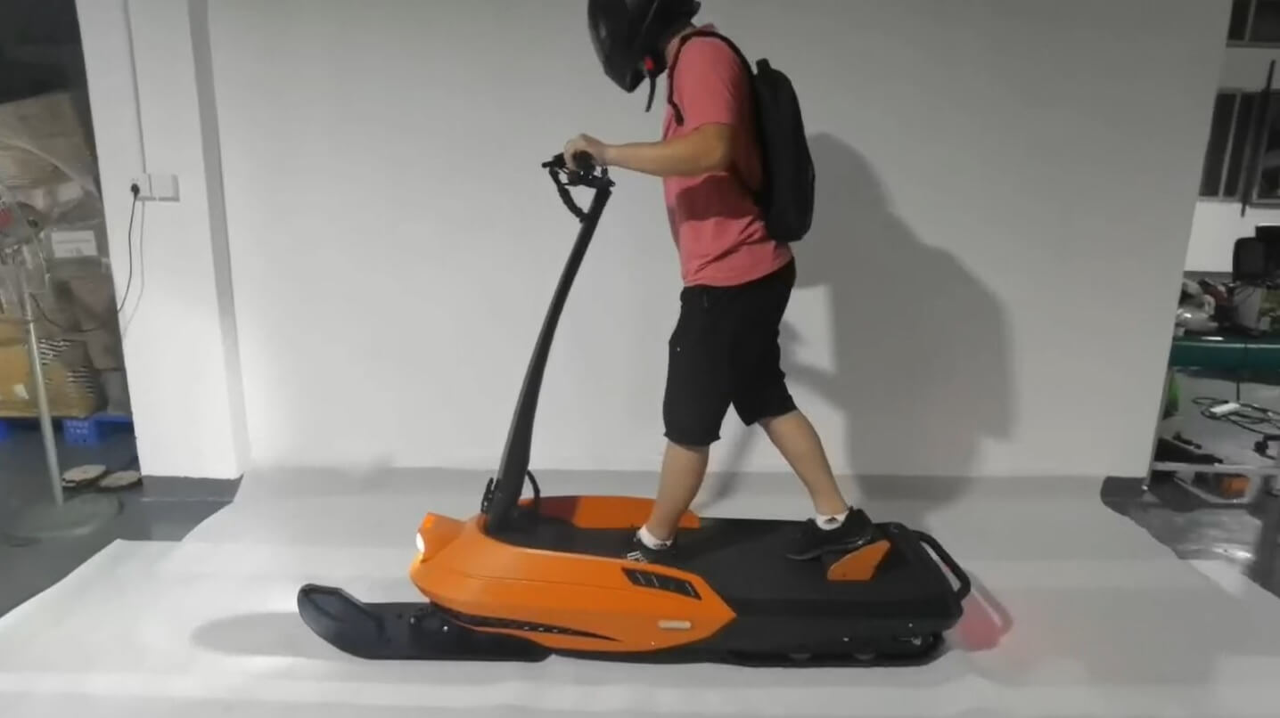 Стоячий электрический одноколейный снегоход— с одной гусеницей и одной лыжей. По сути является легким снегоходом. Вездеход отлично подходит для рыбалки и охоты. Удобно проезжать через ветки и кусты, лыжи не цепляются. По сути это аналог мотосноуборда.