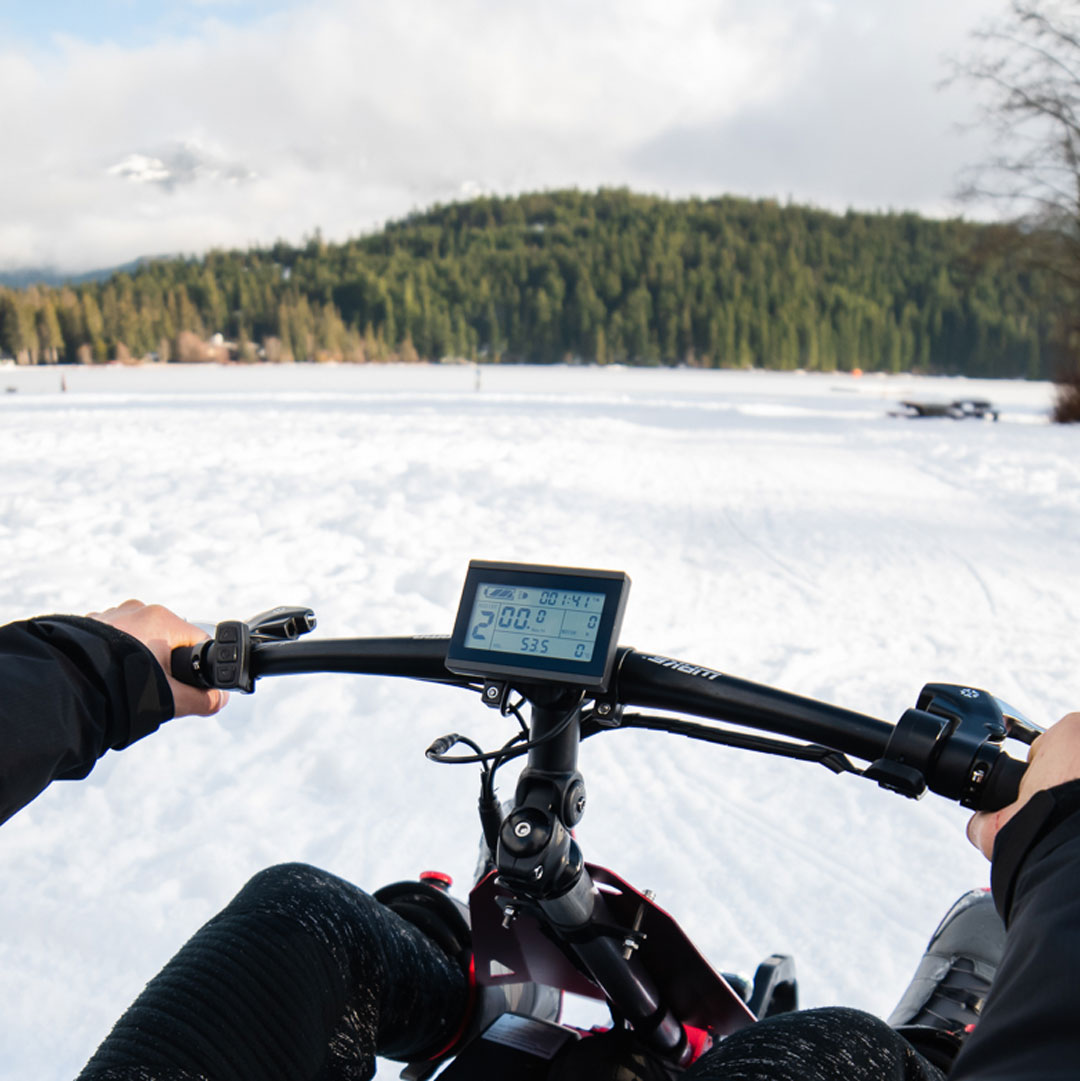 Snowkart оснащен дросселем большого пальца, который дает вам дополнительный импульс, который активирует двигатель пропорционально крутящему моменту, независимо от того, вы крутите педали или нет, чтобы дать вам полностью электрическую езду, если вы не можете крутить педали или вам нужно мгновенное ускорение или толчок в гору.