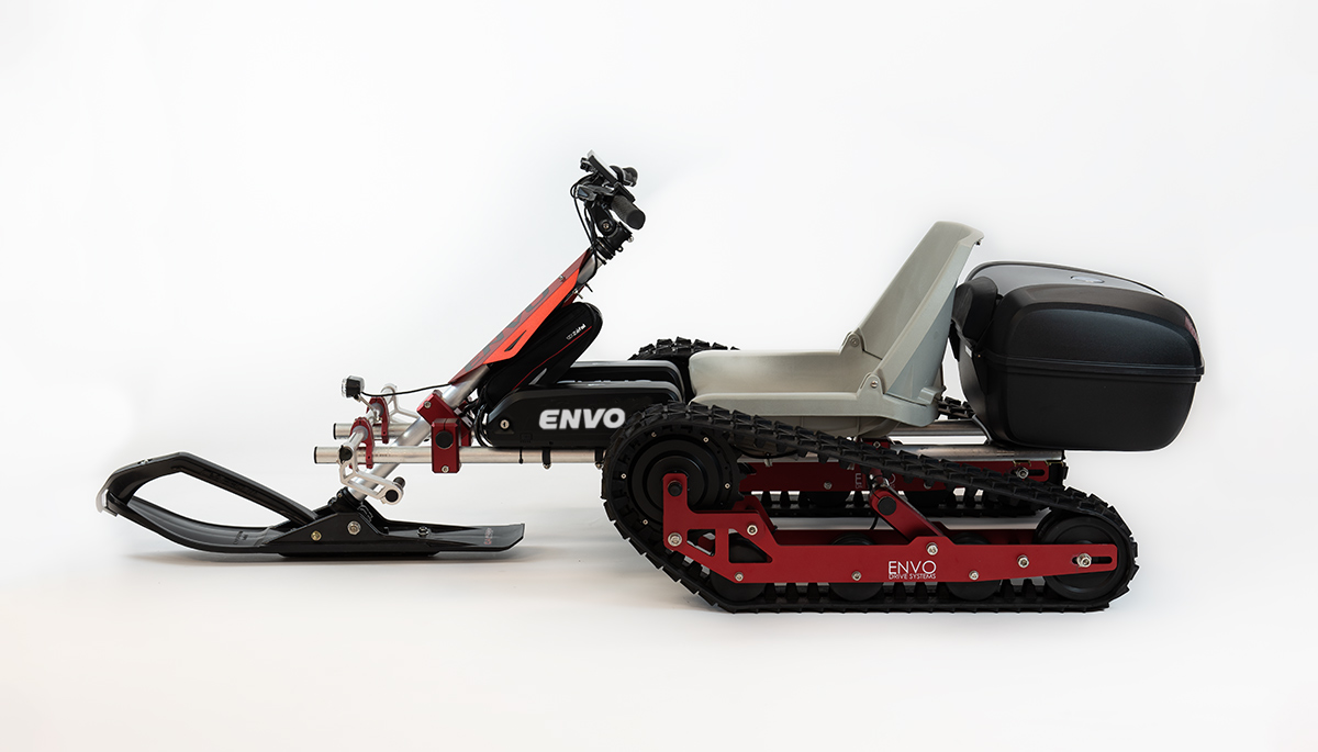 Сделанный из нескольких алюминиевых деталей, обработанных на станках с ЧПУ, настраиваемый и удобный в обслуживании узел снежной гусеницы позволяет построить любую электрическую снегоуборочную машину для езды или даже электрический снегоочиститель.