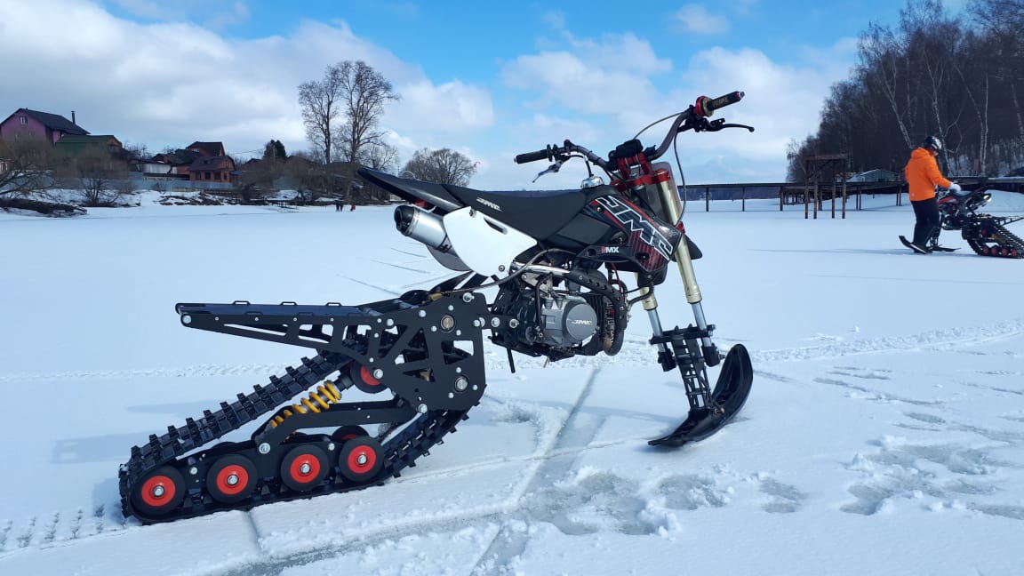 Сноубайк это новый вид спорта, который набирает популярность в России благодаря дешевым китайским мотоциклам и любви русских к вездеходной технике.
