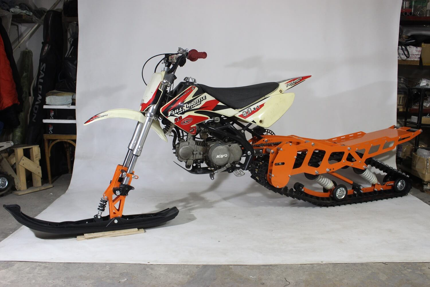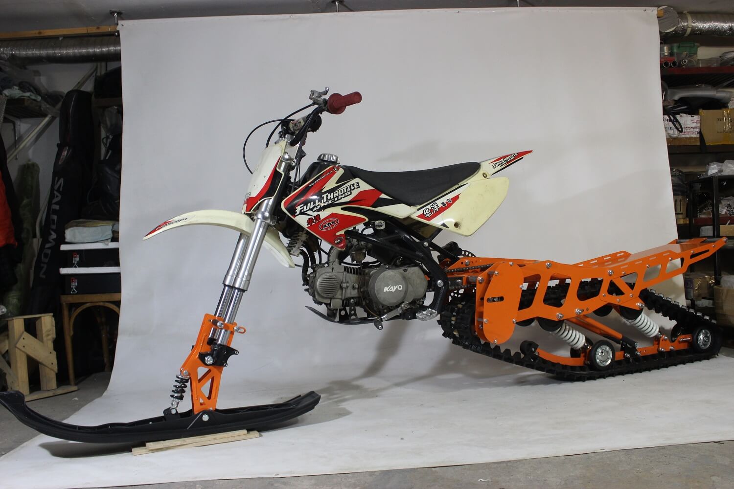 Универсальный гусеничный комплект для мотоциклов. Гусеничный мотоцикл это, по сути, одноколейный снегоход. Вы получаете возможность продлить сезон и эксплуатировать мотоцикл не только летом но и зимой.