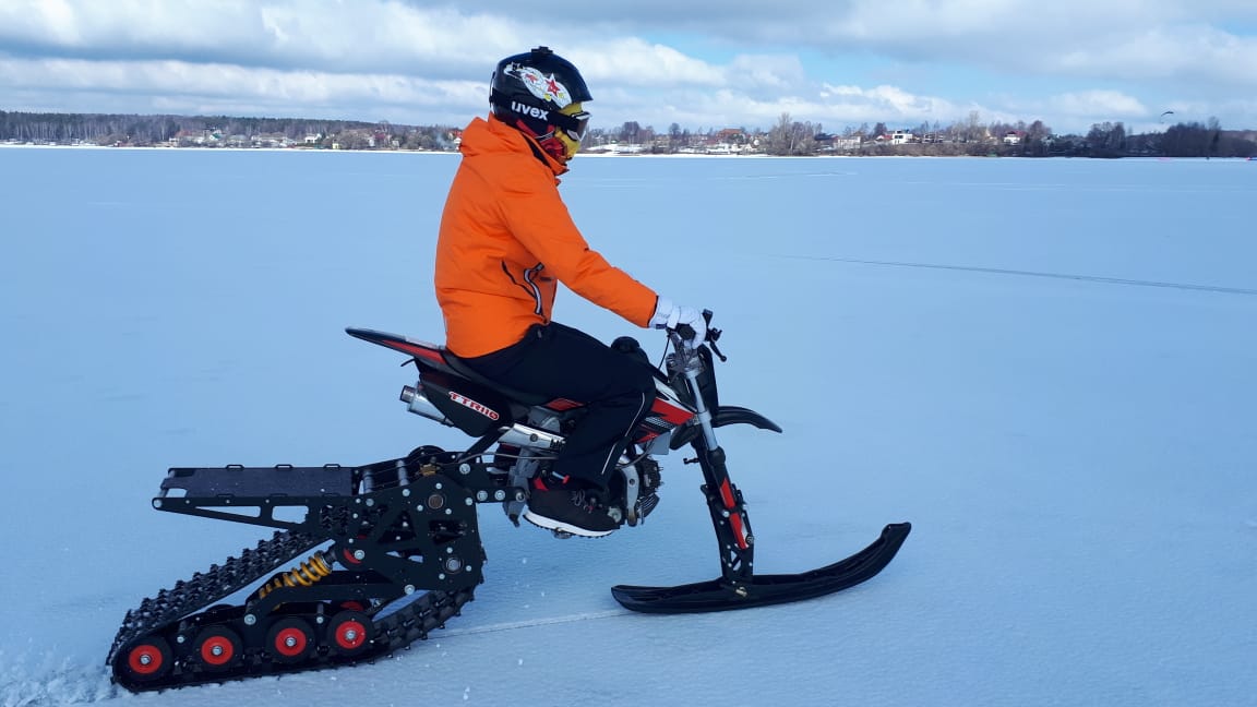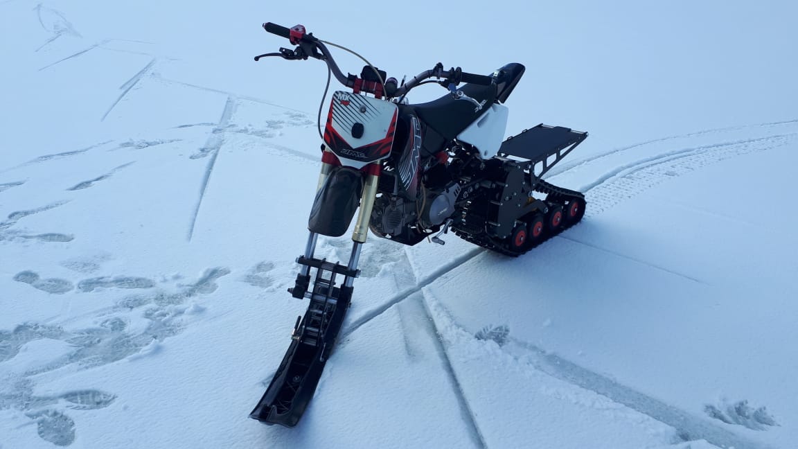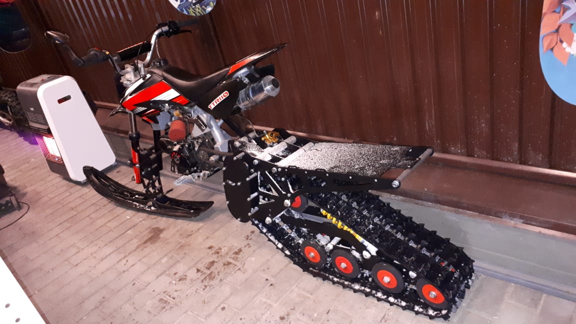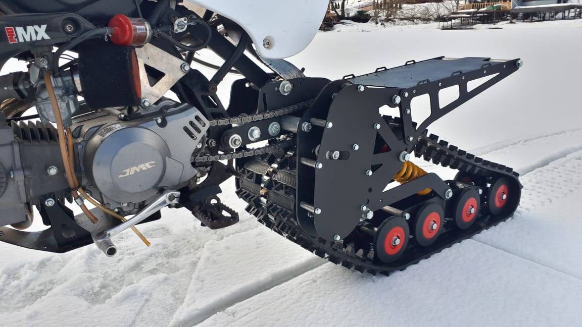 Универсальный гусеничный комплект для мотоциклов. Гусеничный мотоцикл это, по сути, одноколейный снегоход. Вы получаете возможность продлить сезон и эксплуатировать мотоцикл не только летом но зимой.