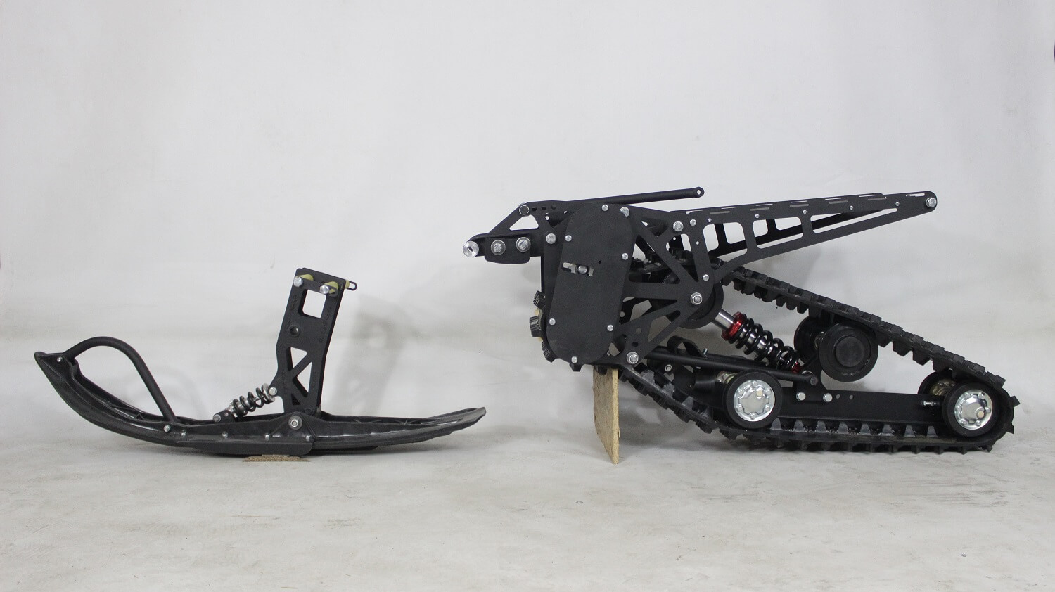 • Light. Максимально упрощенная версия, для тех, кто ищет выгоду при покупке, и готов использовать комплектующие со своего мотоцикла, или знает где взять эти комплектующие за бесценок. Со своего мотоцикла можно установить: тормоз передний (питбайк), цепь, амортизатор (270-310 мм). Также в этой комплектации нет хвоста. Он нужен в основном для размещения полезного груза (рюкзак, канистра и т.п.), и как брызговик от снега из-под гусеницы. В общем если максимально экономить, то это лучший вариант. Дешевле этого варианта просто невозможно сделать физически.