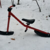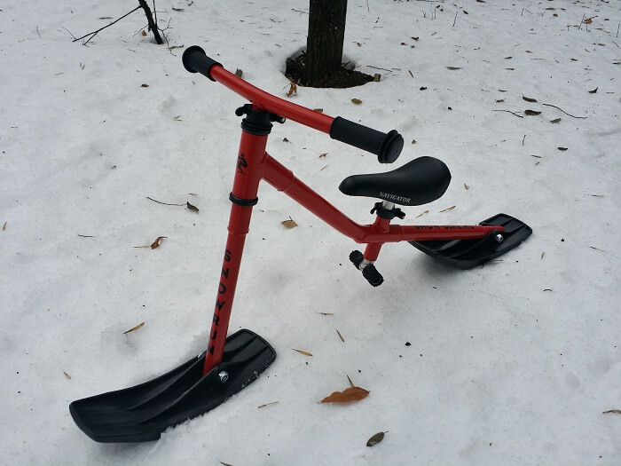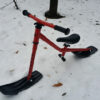 Вес снежного беговела составляет всего 2 кг, благодаря крепкой алюминиевой раме и легким морозостойким лыжам. Модель может быть как с подставками для ног, так и без них (более простая версия). SnowRUN создан для использования детьми в возрасте 2-5 лет, для более старших спортсменов мы производим другие модели.