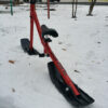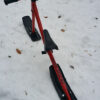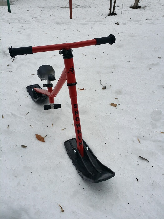 Все материалы, используемые в этом спортивном снаряде, безвредны для детей. Малые габариты позволяют легко убрать снегобег в багажник легкового автомобиля.