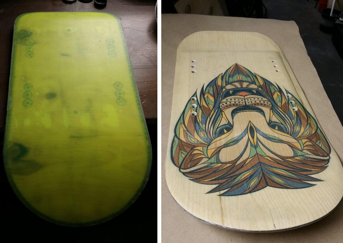 В этом сезоне (2016-2017) начали делать рамы для сноускута и теперь пробуем клеить доски. Начали с передней доски чтобы отработать технологию.
