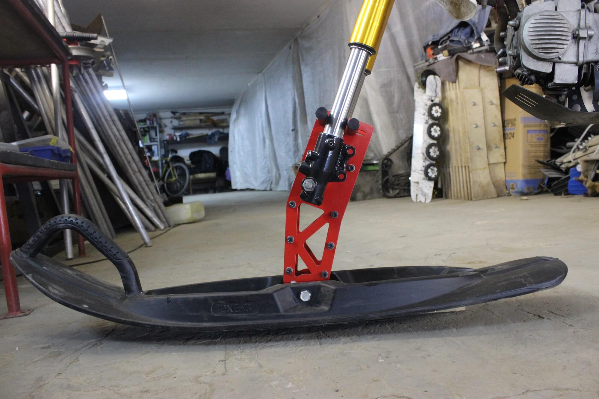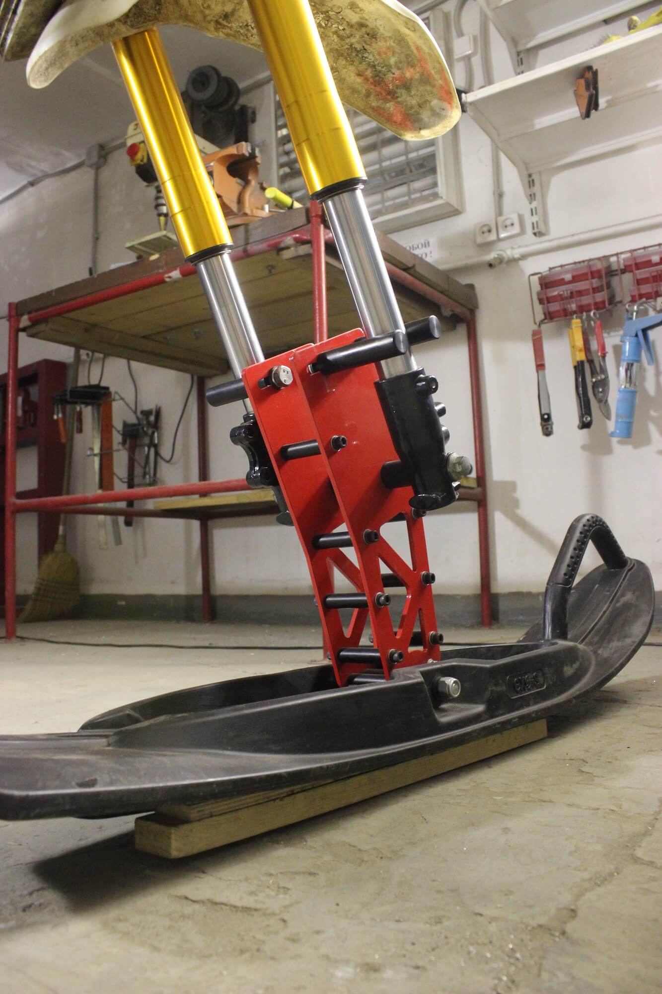 — лыжный модуль в сборе. Крепление к вилке с набором втулок под различный диаметр оси и пластиковая морозостойкая лыжа.