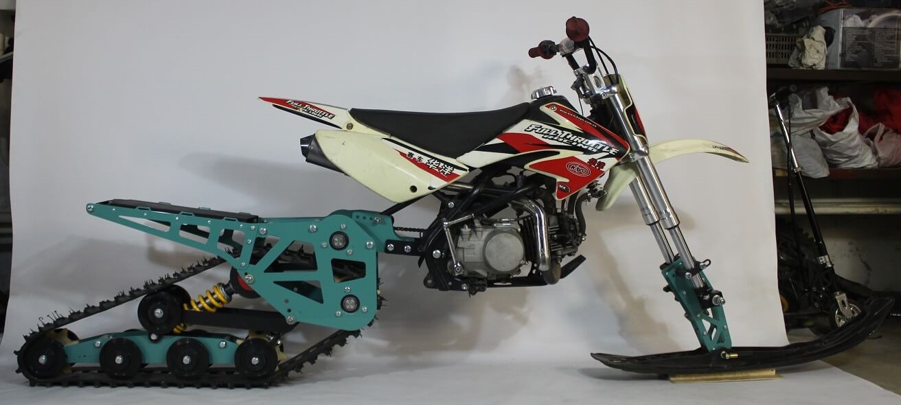 Гусеничный питбайк это, по сути, одноколлейный снегоход. Вы получаете возможность продлить сезон и эксплуатировать мотоцикл не только летом но зимой.