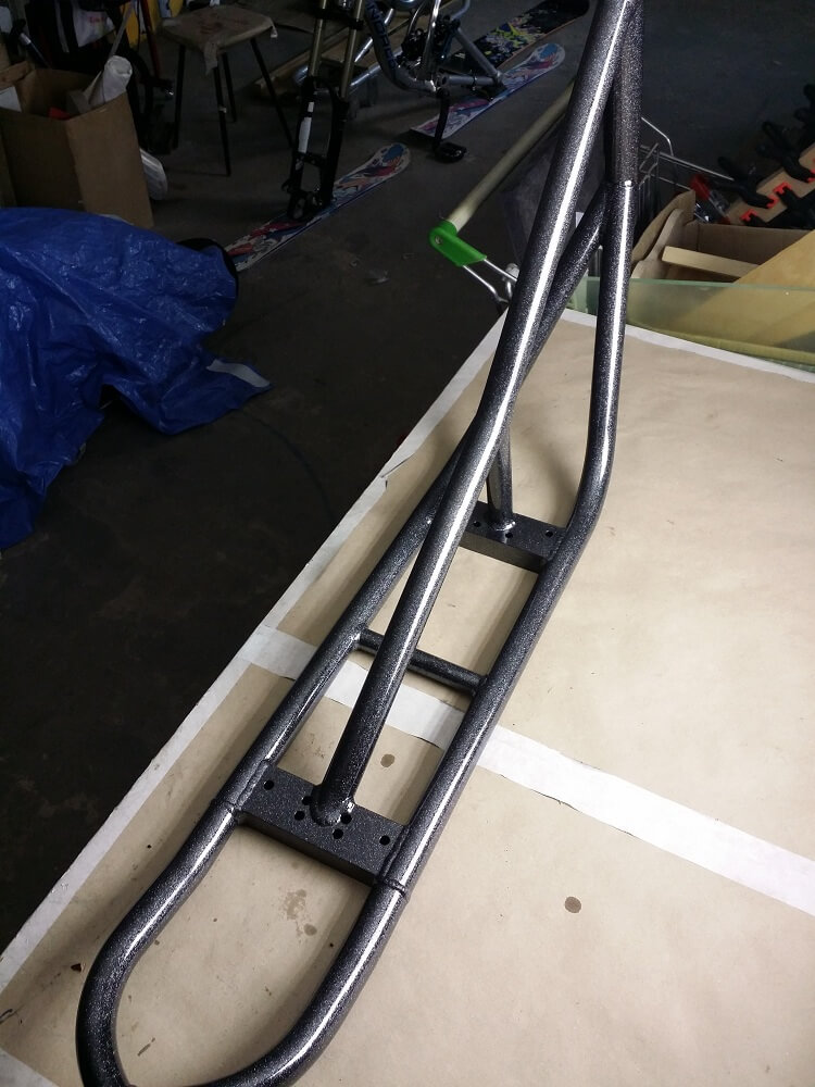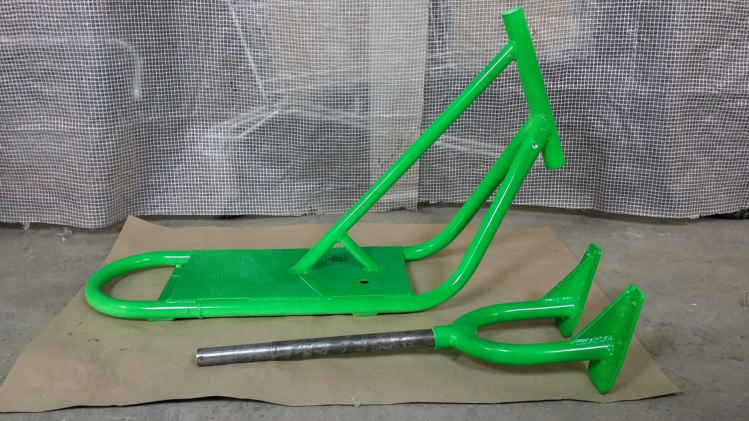 Материал рамы — алюминий АМГ5. Рулевой стакан под неинтегрированную рулевую колонку. Можно использовать рулевую на шарах или на пром подшипниках. Вилки от других фирм сноускутов могут не подойти, мы сами не тестировали.