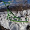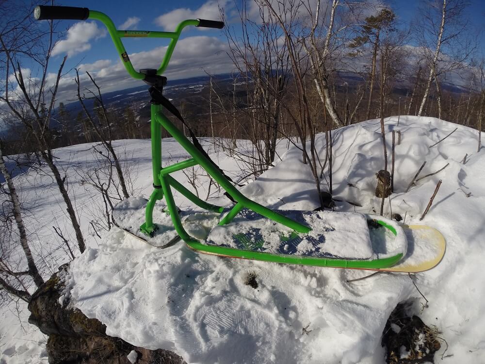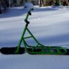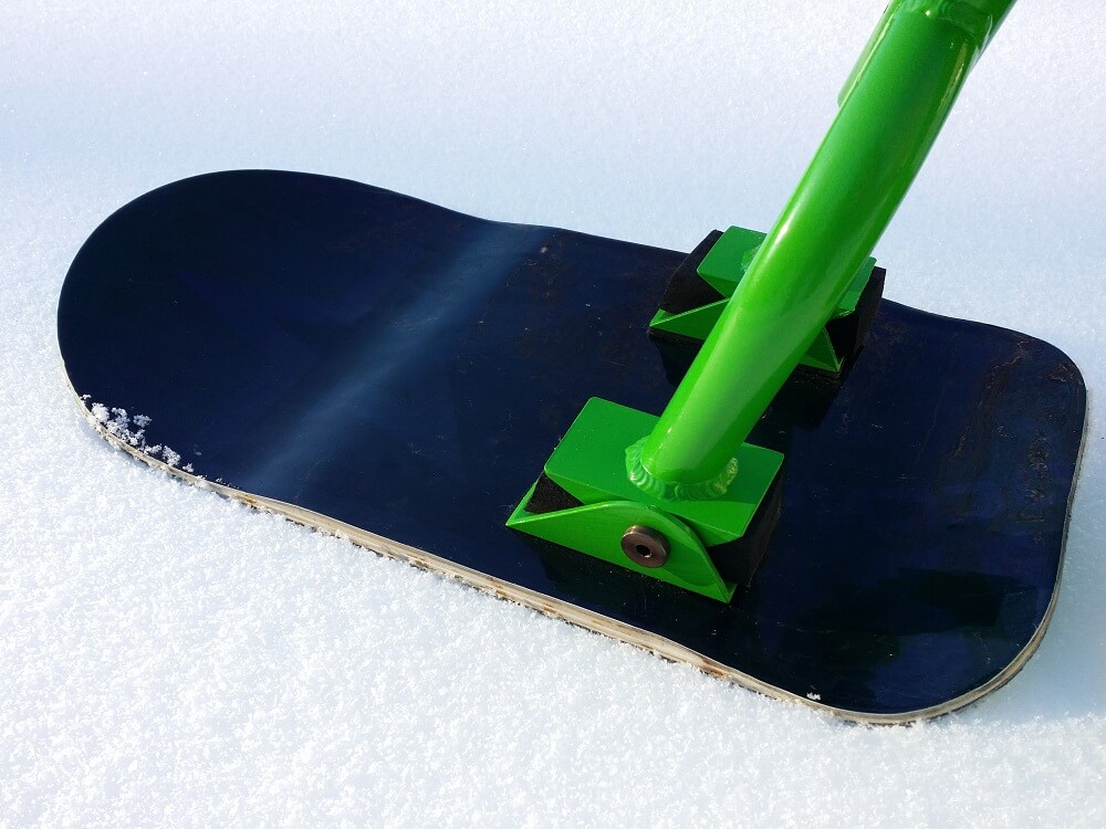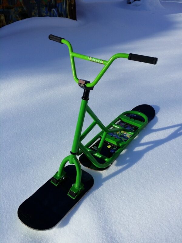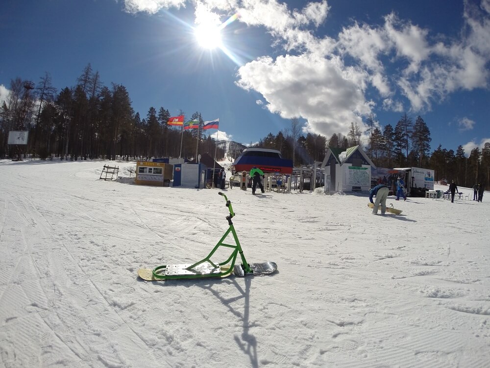 4) Задняя доска. Мы решили использовать небольшой лайфхак и установили в качестве задней доски — детский сноуборд. Это значительно дешевле чем покупать новую доску именно для сноускута. Кроме того найти детский сноуборд на авито не так сложно. Это позволило нам максимально снизить стоимость всего снаряда. Ростовка доски 110 см.