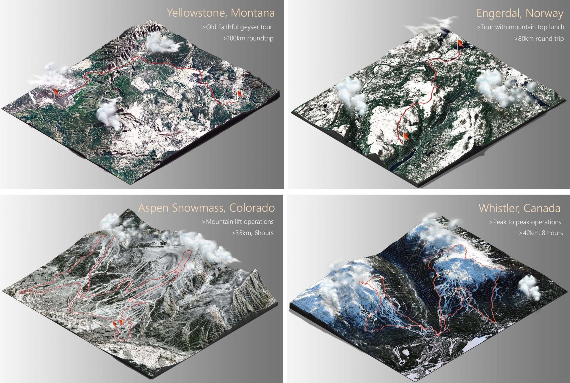 Приложение снегохода позволяет планировать свою поездку, отслеживать успехи, анализировать поездку и делиться недавно обнаруженной местностью с друзьями.