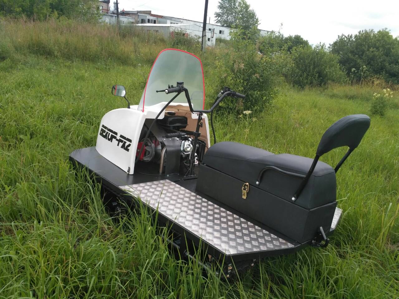 В дополнение к этому, производитель предлагает установить кофр, задние габаритные огни и электролебёдку, а также включить в комплект поставки сани-волокуши. В свою очередь, как официальный представитель предприятия в Москве, наш магазин готов предложить дополнить мотовездеход колёсным прицепом самосвального типа, с откидными бортами, на внедорожных шинах пониженного давления с вездеходным протектором, грузоподъёмностью до 300 кг (возможен тент).