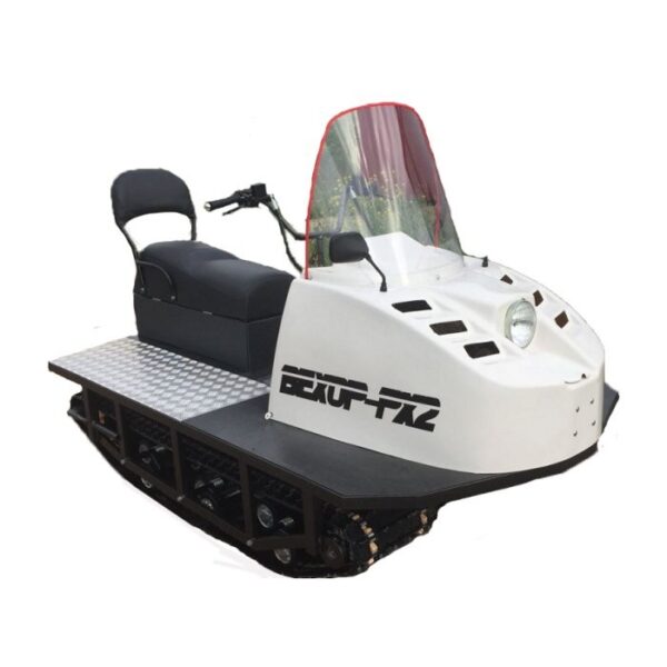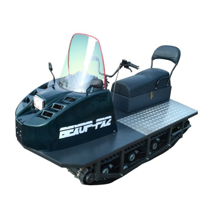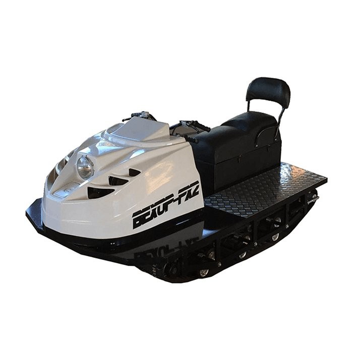Ко всем, выше перечисленным достоинствам, а также к слову о надёжности, можно добавить несущий, сверхпрочный стальной кузов. Одной полной заправки бензобака с лихвой хватит на 3 часа работы китайского четырёхтактного двигателя, дешёвого, проверенного временем и многообразием климатических зон РФ. Таким образом, лёгкий гусеничный снегоболотоход без дозаправки может проходить до 80-90 км по не сильно пересечённой местности.