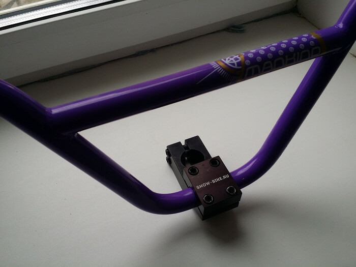 ВМХ вынос руля стандартной (классической) геометрии, собственного производства.  Вынос от штока 50 мм. Выполнен из фрезерованного дюраль-алюминия. Шток 1 , 1\8. Болты для крепления М8 под шестигранник 6.