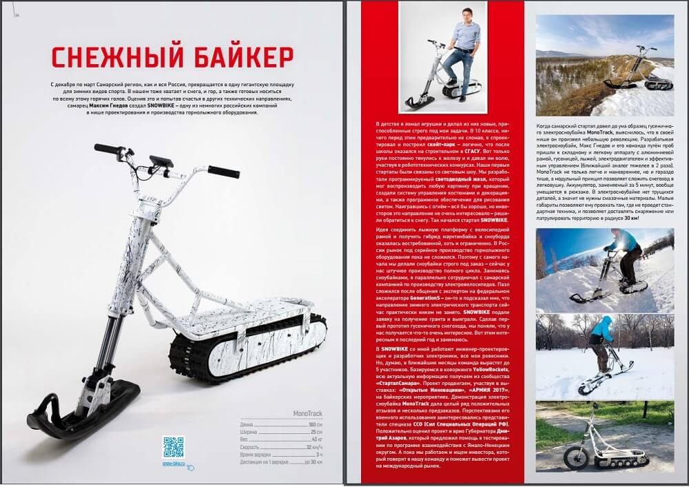 Небольшая публикация о электросноубайке в журнале ИДИ.