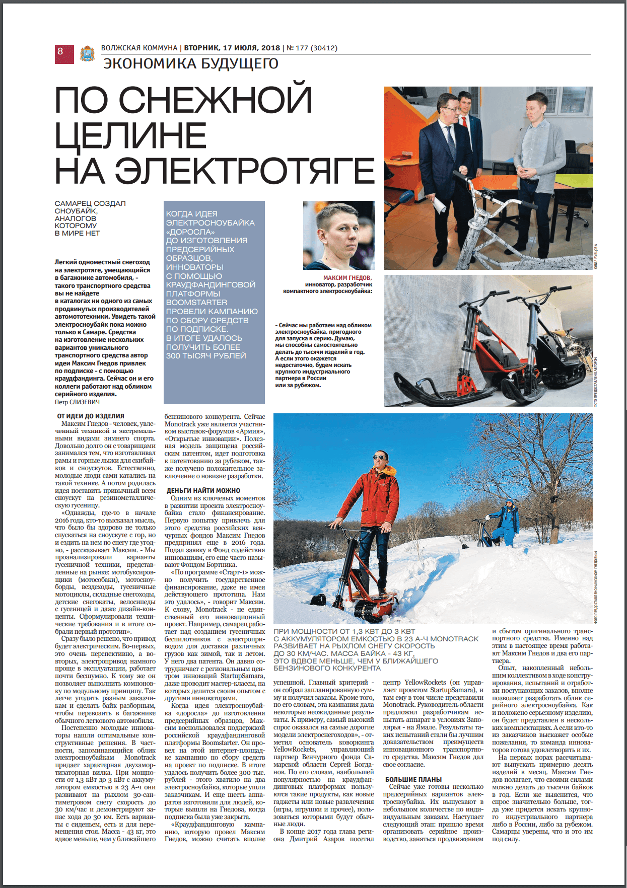 Статья от Петра Слизевича о нашем проекте в Волжской коммуне.
